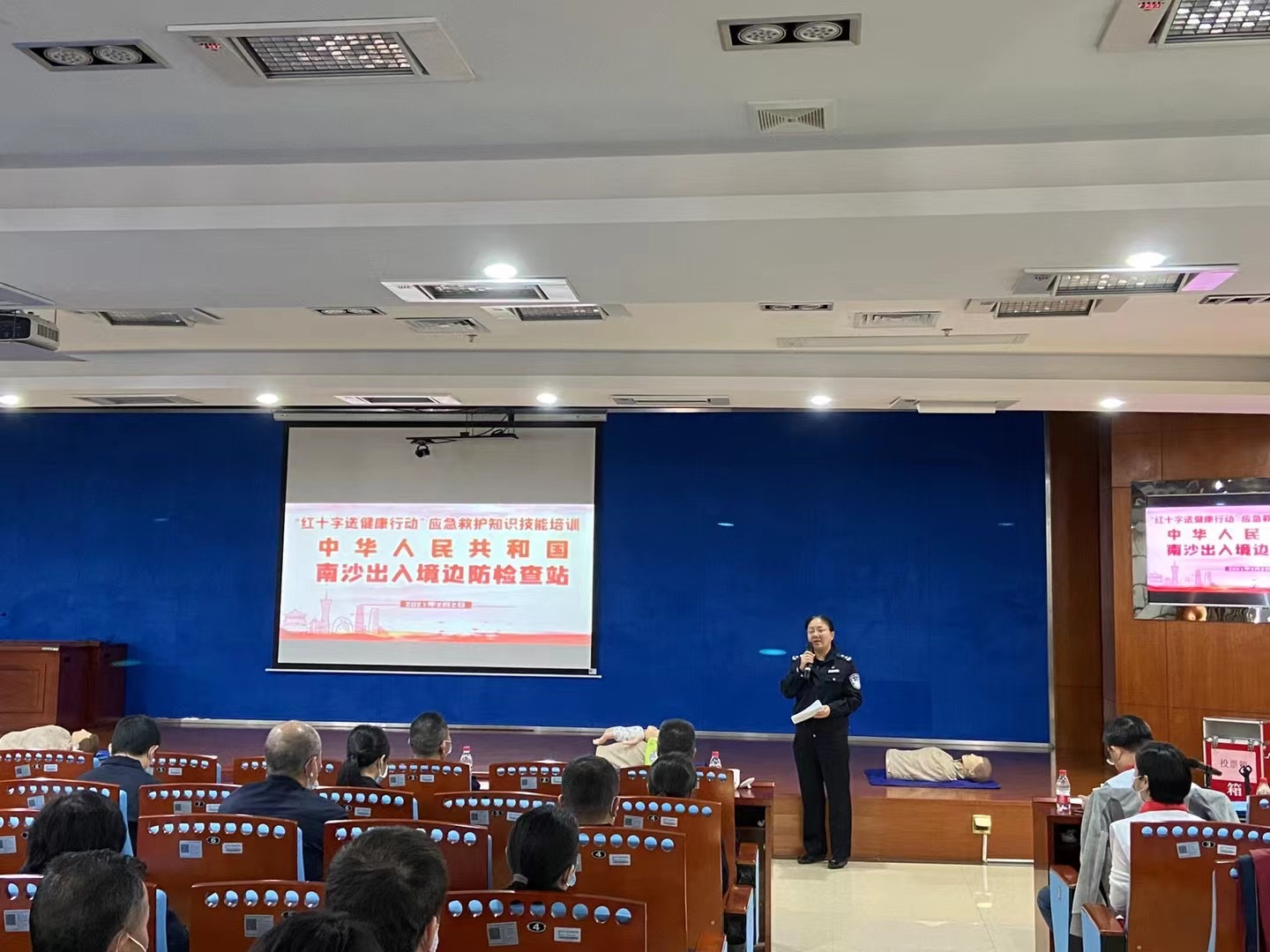 新春将至,年味渐浓,安全培训不可少,疫情防控不可忽视。为保障机关职工干部度过一个安全、健康、文明、祥和的新春佳节, 2月2日上午,由广东省直机关工委和广东省红十字会联合主办,2021年“红十字送健康”行动——红十字应急救护知识技能普及活动在南沙出入境边防检查站举办,由南沙出入境边防检查站余珍玲站长主持开班仪式并作动员讲话,50余名党员、干部和职工代表参加了讲座培训。