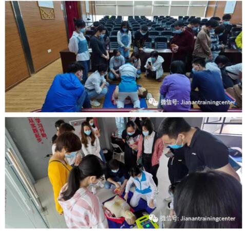 在健安培训中心老师们的带领下,学员们积极有序的参与技能训练。一个一个的轮流练习心肺复苏、AED等技能操作,01、02、03、04、05、06、07、08.............