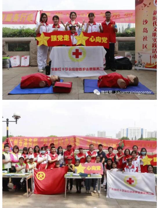 服务二队联合港务紧贴“党史和广州港航宣传”展台,广东省红十字会应急救护服务队的“白衣天使”们正在热乎的忙着,他们正在向公众普及急救知识、展现急救技能呢!