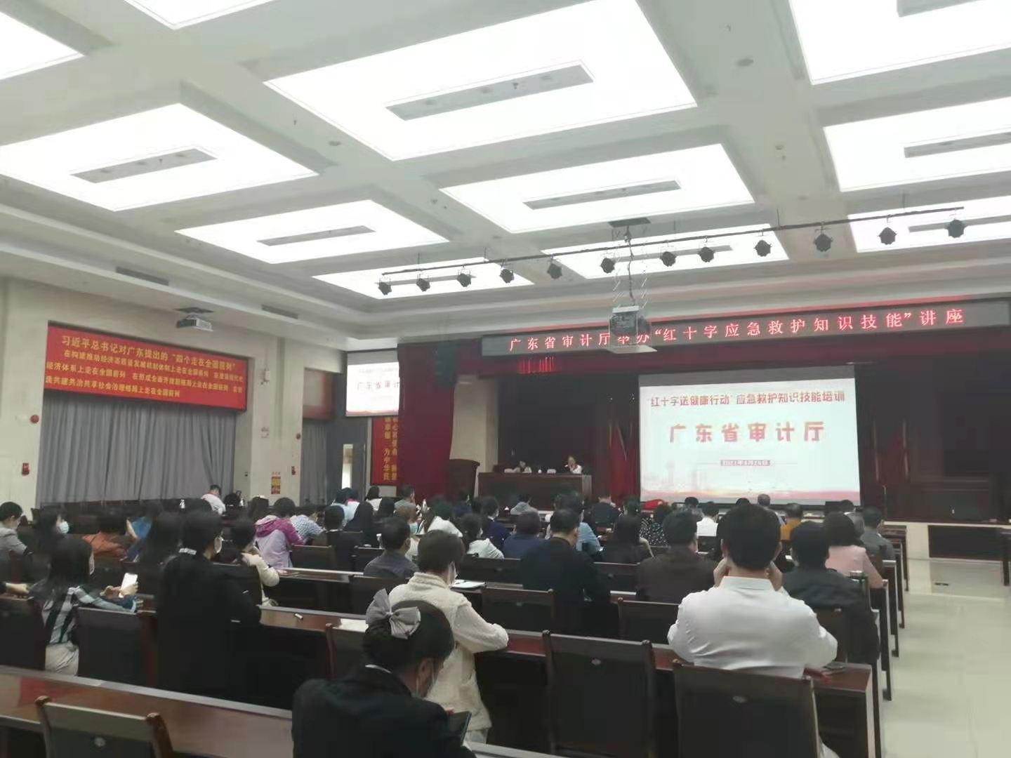 广东省红十字会志愿者中山大学孙逸仙纪念医院急诊科主任蒋龙元教授对常见急症的预防和急救方法娓娓道来, 约80名广东省审计厅党员干部认真听讲。清晰明了、丰富、实用的知识和技能讲解,课堂时不时发出阵阵掌声。