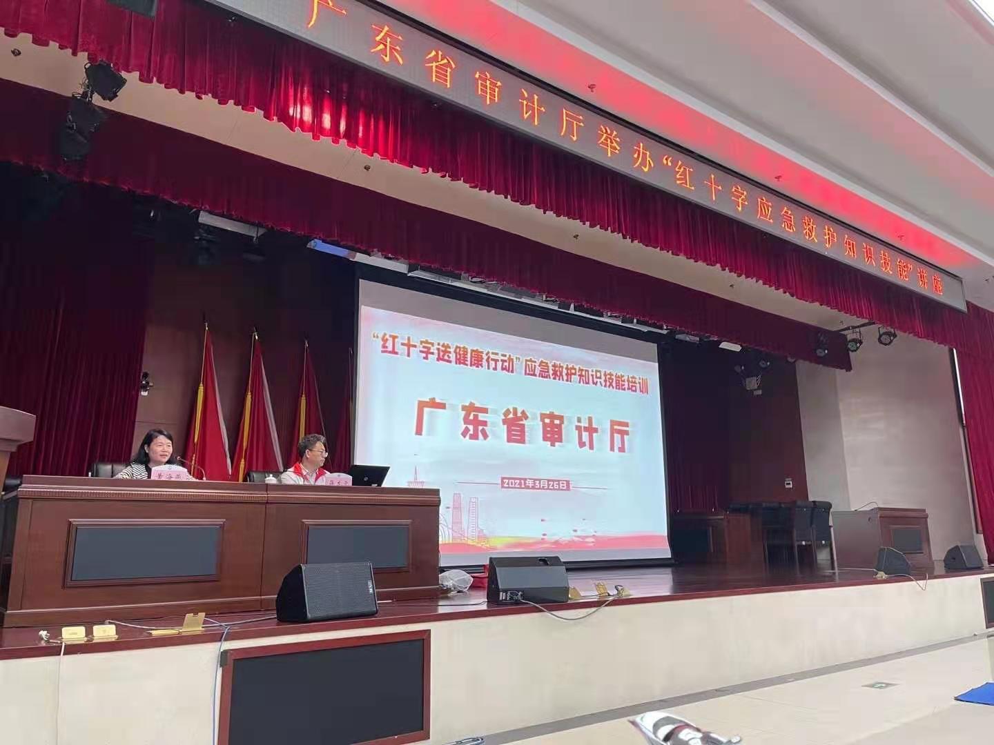 这是由广东省直机关工委和广东省红十字会在广东省审计厅举办的2021年“红十字送健康”行动——红十字应急救护知识技能普及活动,也是是送给党员干部一份健康大礼包,有利于提高党员干部职工健康意识,普及健康知识与急救技能,形成人人关爱生命、重视健康的良好氛围。省审计厅工会委员会主席、二级调研员黄海燕主持开班仪式并全程带头领学。