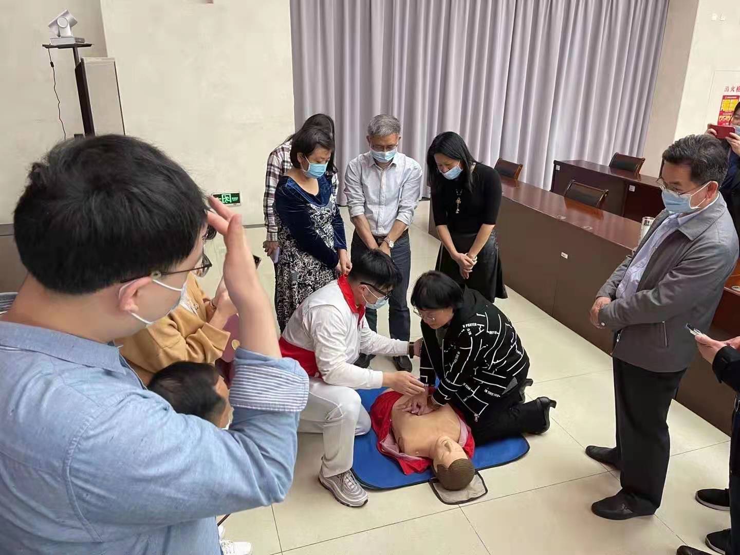 课程内容形式多样,蒋龙元主任除了讲解常见急症的内容外,还阐述了现场心肺复苏术、AED使用突发事件的防灾避险等知识。在实操环节,在省红十字志愿者指导下进行心肺复苏、AED等操作训练。大家在练习的过程中积极的向志愿者们请教他们不懂的知识,以确保急救操作的正确性。