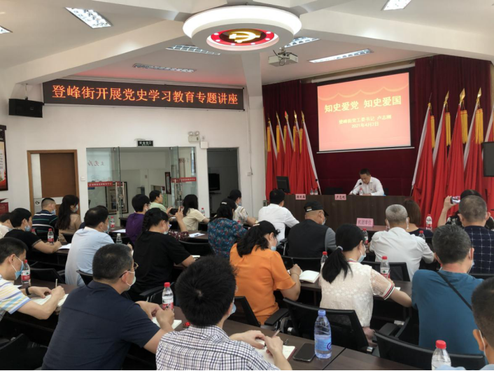 活动当天,街党工委卢志刚书记主持召开登峰街党史学习教育专题讲座,邀请了越秀区委党校高级讲师颜世磊进行精彩授课。颜老师结合中国共产党建党100周年党史,生动讲述了党“为人民谋幸福、为民族谋复兴、为世界谋大同”的主题主线,引导党员干部树立正确的党史观。