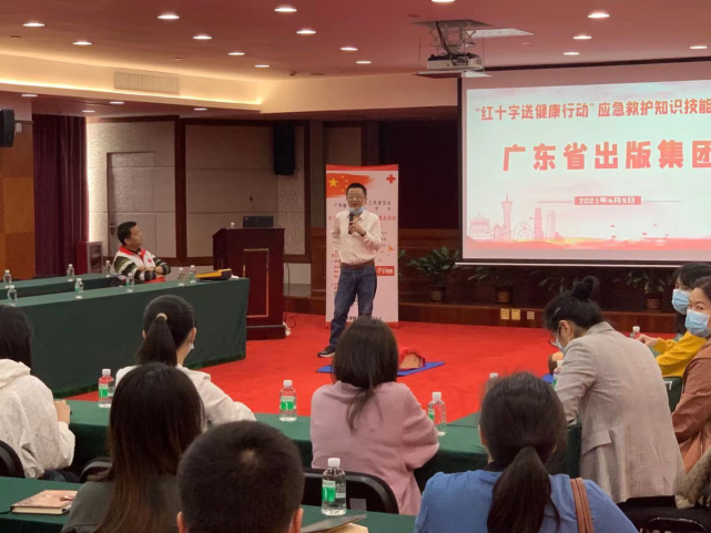 4月9日下午,由广东省直机关工委和广东省红十字会联合主办的2021年“红十字送健康”行动—红十字应急救护知识技能普及活动在广东省出版集团举办,现场约50名党员、干部、职工参加了此次活动。