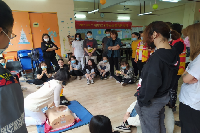 2021年4月16日,广州市红十字会2021年救护员培训班在滨江街社工服务站开班, 29名社区居民、社工经线上理论学习及考核合格后来此参加线下培训。 本次培训严格按照《中国红十字会应急救护培训标准化手册》进行。
