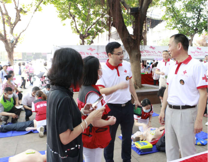 为推动党史学习教育走实走深,切实发挥红十字会作为党和政府在人道领域上的助手作用,动员更多的社会力量参与和支持红十字事业,以优异的成绩庆祝中国共产党成立100周年,在第74个“世界红十字日”当天,广东省和广州市红十字会联合在广州市城隍庙广场举办“关爱生命,救在身边”——5·8世界红十字日纪念活动。
