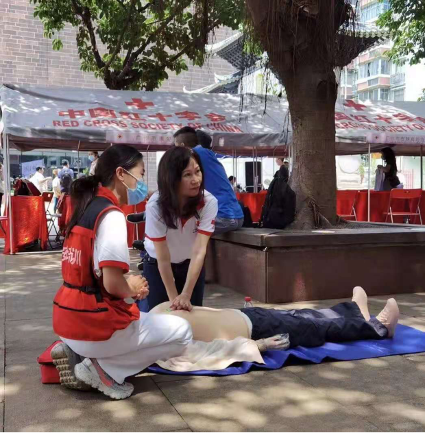 活动期间,广东省红十字会党组成员、副会长兼秘书长李何荣、广州市红十字会党组书记、常务副会长张青蕾等领导带头领学,带动了志愿者、安保人员、外卖小哥、家长带着孩子学、医务人员和退役老兵等各类群体的市民来学习。广东省红十字应急救护志愿服务二队向市民展示心肺复苏和AED的操作,并对动作进行辅导。通过心肺复苏操作反馈,现场实时显示操作成效,互动性强。有的市民说“在电视里面看了很多次,但是实际操作还是第一次。感觉还是真不同。”“这种实时反馈,让我真实清楚自己的水平。原来看上去简单的几个动作,要做好,学问可大。”红十字志愿者向市民介绍了红十字会定期开展应急救护公益培训,派发4000份资料。市民纷纷为这次活动点赞。