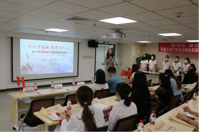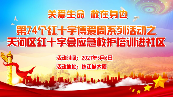 第一场活动进社区,于2021年5月6日开展,天河区红十字会送应急救护培训走进珠江城大厦,现场有30余名群众参与培训。