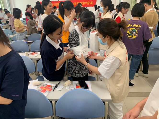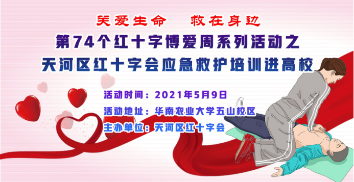 为了纪念第74个“世界红十字会日”,动员更多的社会力量参与和支持红十字事业,第三场活动在5月9日在华南农业大学五山校区开展。本次活动邀请了三元里社区急诊科副主任医师李永新进行授课培训,参加急救培训的同学约100人。