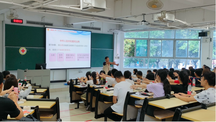 为增强学生的安全意识,提高学生的应急救护能力,使学生面对突发意外事件时能迅速采取最正确、最有效的救护措施。5月15日在华南理工大学五山校区进行急救证考核活动,本次邀请了三元里社区急诊科副主任医师李永新进行授课培训,参与本次急救证考核的学生近100人。