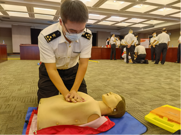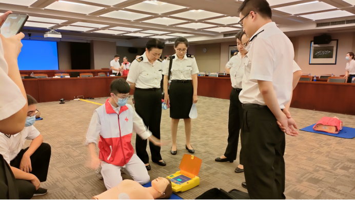 生命是无价的,面对灾难,有时一则小小的知识就能创造出生命的奇迹。由广东省机关工委联合省卫健委、省体育局、省红十字会主办的《健康共护——广东省直机关干部职工健康关爱公益活动》在5月14日走进黄埔海关,邀请到了省红十字会志愿者、中山大学孙逸仙纪念医院宋凤卿教授为海关职工开展应急救护培训讲座,从领导到一线职工共50人参与此次培训学习。