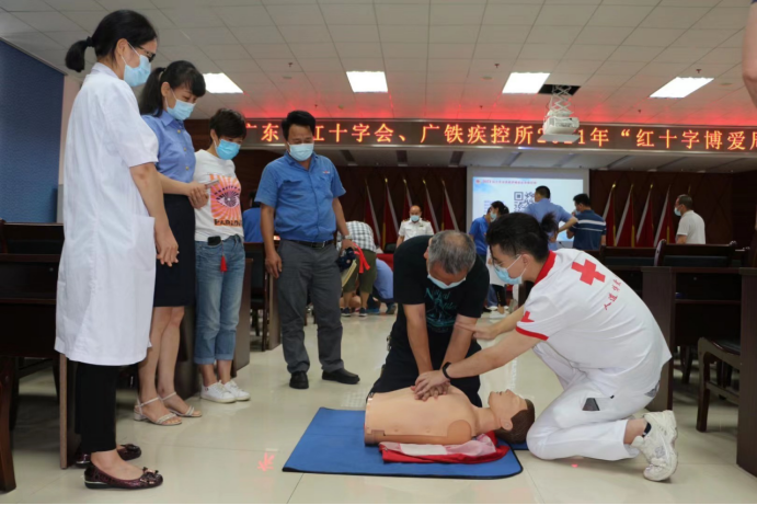 为大力弘扬红十字精神和普及应急救护知识,提高群众在突发事件中的自救互救能力,5月14日上午,广东省红十字会联合广州市红十字会走进广州铁路疾病预防控制中心开展红十字应急救护培训,现场有112名党员、职工、干部参加了此次培训。