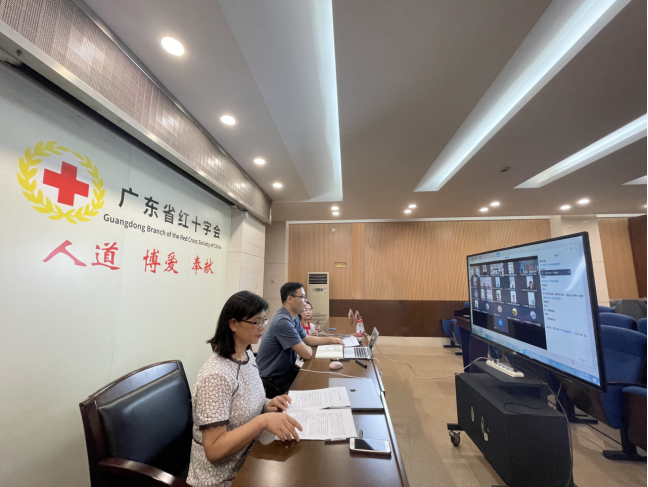 省红十字会赈济救护部主要负责同志及健安培训项目负责人员在主会场参加会议,广州、湛江、汕头、梅州、云浮、清远、河源、茂名、揭阳、潮州和韶关共11个地市红十字会领导及项目负责人在各地分会场参会。