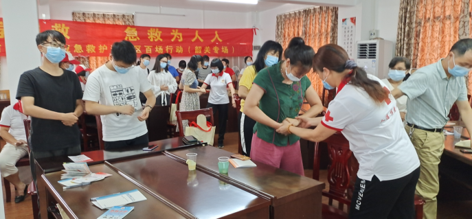 “开展应急救护培训,普及应急救护、防灾避险和卫生健康知识,组织志愿者参与现场救护”是红十字会的职责。为了进一步增强社区居民的生命保护意识,倡导社会公众树立应急救护意识,6月11日上午,由广东省红十字会举办联合韶关市红十字会、始兴县红十字会举办的红十字应急救护进社区百场行动韶关专场第四场培训顺利在城中居委会课室开展。始兴县红十字会秘书长李集洪居民,片区机关单位人员、负责环境卫生的工作人员及居民共36人参加了。
