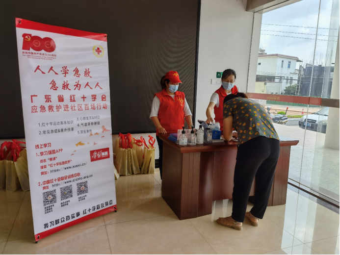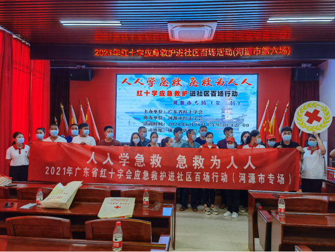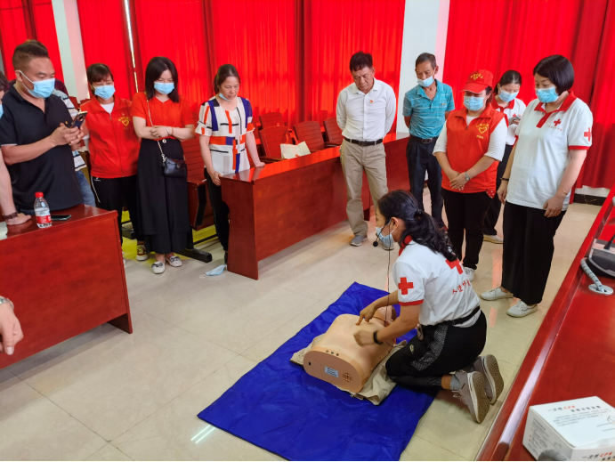 广东省红十字会联合河源市红十字会和源城区红十字会为给埔前镇陂角社区居民送上“保命”课程做了充分准备与调研。红十字应急救护进社区百场行动河源市专场(第六场)于2021年6月21日上午正式开展,50名党员干部、志愿者和居民代表参加了,并领取宣传资料。