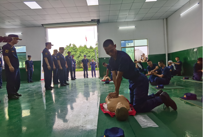 当前,急救技能培训已列为广东省新入职消防员必训课目。今年为红十字应急救护推进年,为建立持续有效的培训机制,不断扩大培训的深度与广度,在广州市红十字会的支持下,于5月17日,训保支队和健安培训建立应急救护共建单位,互相授予牌匾,以深化双方在应急救护培训深度与广度,资源共享,加强在自然灾害事故灾害公共卫生事件等突发事件中的紧急救援和人道救助合作,共同发力,合力攻坚,促进双方救护能力的不断提升,弘扬“人道、博爱、奉献”红十字精神,扎实践行我为群众办事。今年5月共举办六期应急救护培训班,所有新指战员均通过红十字救护培训,取得《红十字救护员》证件,实现“人人培训、人人合格、人人取证”的目标,以优异成绩庆祝建党100周年。