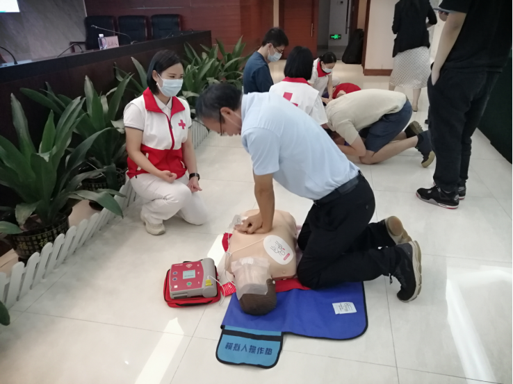 此次培训活动由广东省红十字会志愿者宋凤卿进行理论授课,正所谓“上医治未病”,疾病预防控制是维护公共卫生安全的重要保障,培训伊始,宋教授向在场的党员干部职工提出了两个问题,“如果有人在你面前晕倒了,你作为第一目击者,你敢去救他们吗?如果敢,我们该怎么做呢?”对于宋教授提出的问题,大家纷纷展开热烈地讨论,也提出了各自心里的疑惑,宋教授利用理论知识结合真实的案例,逐一解答了党员干部职工们心中的疑惑。最后,省红十字会志愿者团队带领大家进行了技能实操的培训,实操培训过程中,党员干部职工们学习热情高涨,纷纷参与其中,志愿者以身示范,耐心答疑,现场气氛十分热烈。