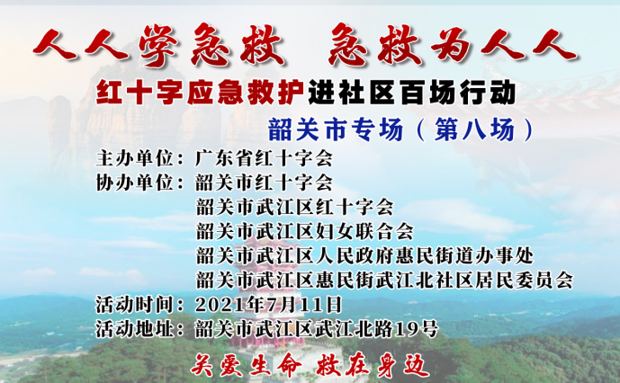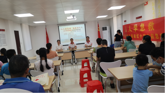 7月11日上午,由广东省红十字会联合韶关市红十字会、韶关市武江区红十字会在惠民街武江北社区举办了红十字应急救护进社区百场行动韶关专场八场培训,现场共有50名社区党员干部、志愿者和居民代表参加,每人领取学习资料。