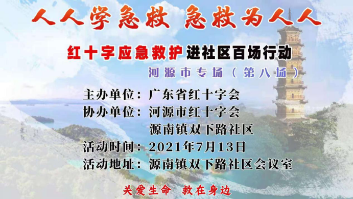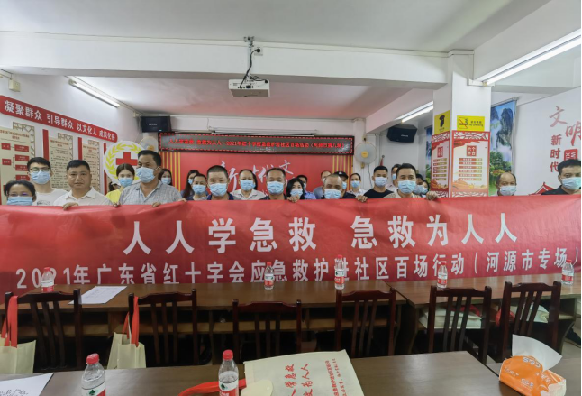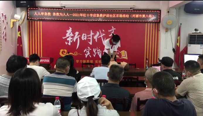 7月13日下午,广东省红十字会联合河源市红十字会、源城区红十字会到源南镇双下路社区开展红十字应急救护进社区百场行动河源市专场(第八场)活动,共46名社区党员干部、群众代表和志愿者参与,向大家普及急救知识,以提高急救技能和自救互救能力,进一步筑牢社区生命防线。
