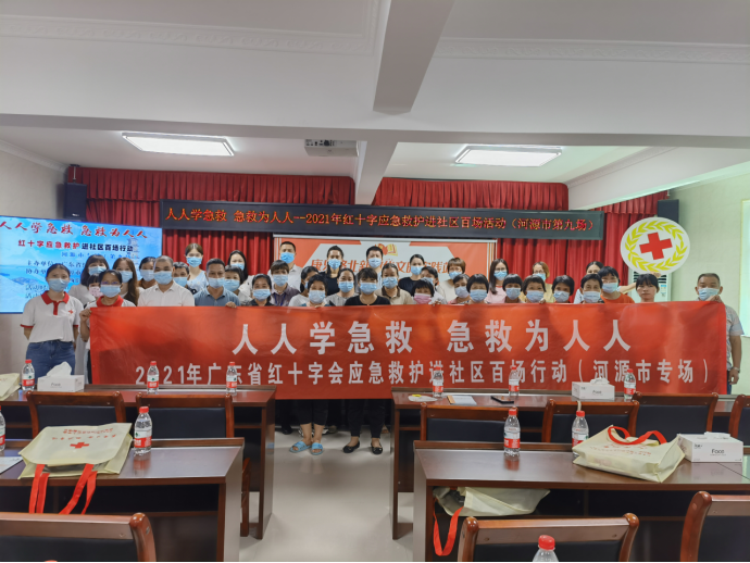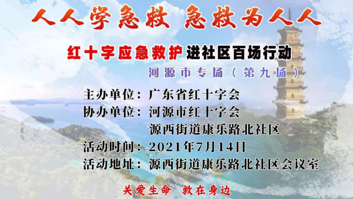 为了进一步普及群众市民应急救护知识,学习和掌握自救和互救的技能,7月14日下午,由广东省红十字会主办,联合河源市红十字会在源西街道康乐路北社区开展了红十字应急救护进社区百场行动河源专场的第九场培训,吸引了50名市民参加,以达到“学习急救,成‘救’你我”的目标。