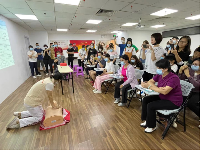7月17日,广州市红十字会应急救护公益讲座在达信大厦课室继续开讲。本期公益讲座报名热烈,通过与报名人员沟通调整,最终40余名居民参加本期公益讲座活动。