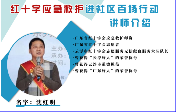 课上,广东省红十字会师资沈红明老师向大家就常见的急症、意外伤害和突发事件的急救处理以及心肺复苏、创伤救护等自救互救知识进行了讲解,并现场演示了心肺复苏术、人工呼吸法、海氏急救法等紧急救护技术,以生动具体的实例,理论和实操相结合的教学方式,让大家领会讲课的内容,回答群众提出的有关急救方面的问题。