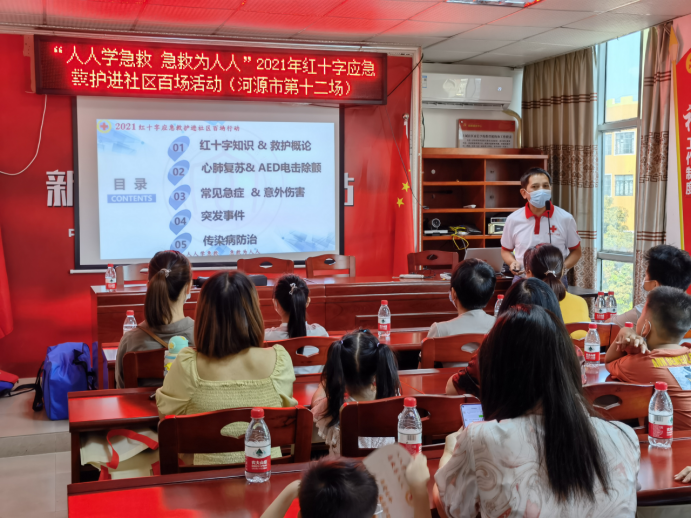 7月28日下午,由广东省红十字会举办“红十字应急救护进社区百场行动”河源专场第十二场培训,在河源市红十字会 、源城区红十字会、上城街道和上城社区精心安排下在上城街道上城社区会议室开展,共41名居民、社区工作者、志愿者、党员干部和学生参加。