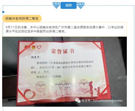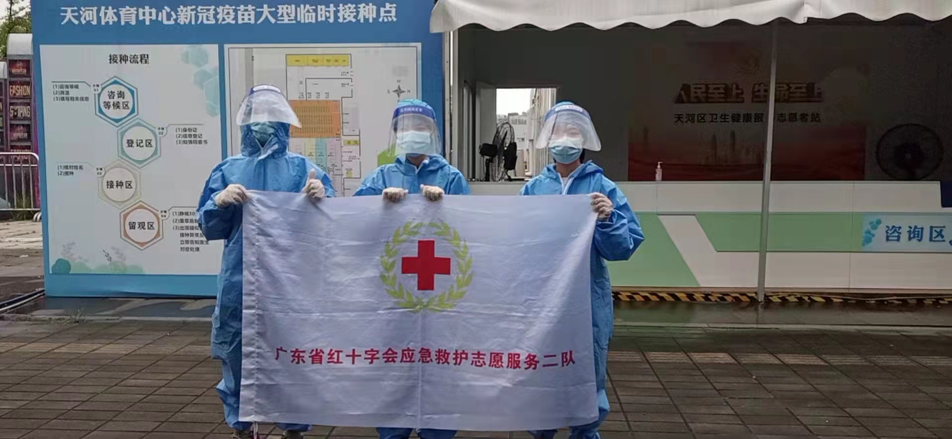 疫情期间,胡老师和中心同事为接种疫苗的长者进行志愿服务,其所在的广东省红十字会应急救护志愿服务二队志愿服务连续在岗满一百天,他们将爱心汇聚成一股正能量,感染着这个城市。