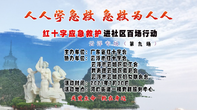 广东省红十字会主办红十字应急救护进社区百场行动,在云浮市红十字会、云浮市云城区总工会、共青团云城区委员会、云浮市云城区妇女联合会组织下,于2021年7月30日在河口街道一楼党群服务中心下午开展了云浮专场第九场培训,现场有社区居民,街道工作人员,党员干部,学生共36人参加。