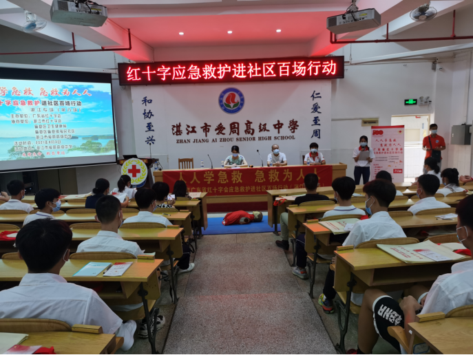 为满足家长和学生迫切想要学习溺水、外伤等急救知识的需求,广东省红十字会联合湛江市红十字会、麻章区卫生健康局、麻章区麻章镇福民社区和湛江市爱周高级中学在福民社区开展红十字应急救护进社区百场行动湛江专场第六场。
