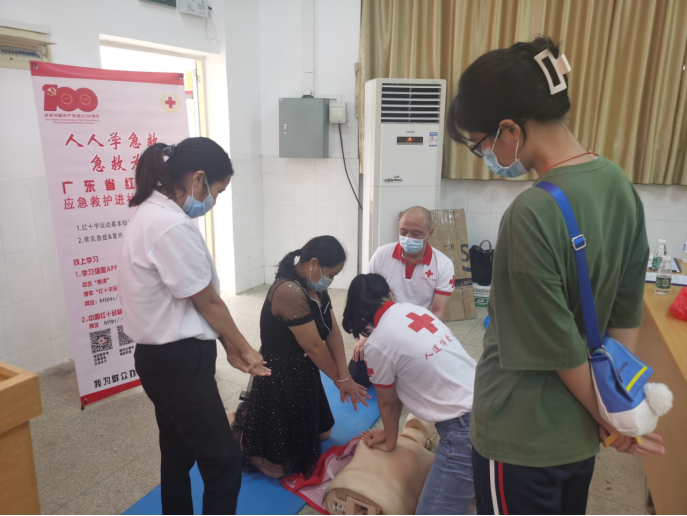 理论部分的内容由广东省红十字会应急救护师资谢丽红老师主讲,谢老师围绕红十字会基本知识、心肺复苏、常见急症等内容,用深入浅出、幽默有趣进行讲授。通过理论的学习,居民们意识到“人工呼吸在溺水急救中的重要性,对于心脏骤停溺水者不能盲目进行控水”,纠正错误认知。
