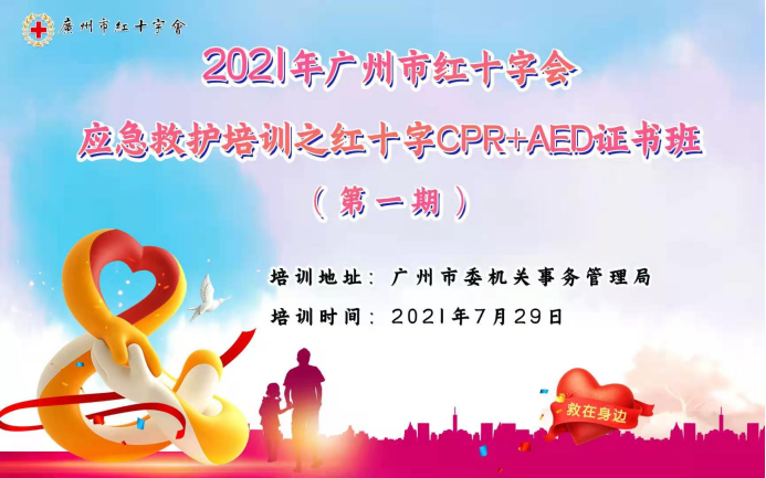 7月29日,广州市红十字会应急救护培训CPR+AED证书课程走进广州市委大院(第一期),广州市红十字会党组书记、常务副会长张青蕾带队一行三人参与了学习。