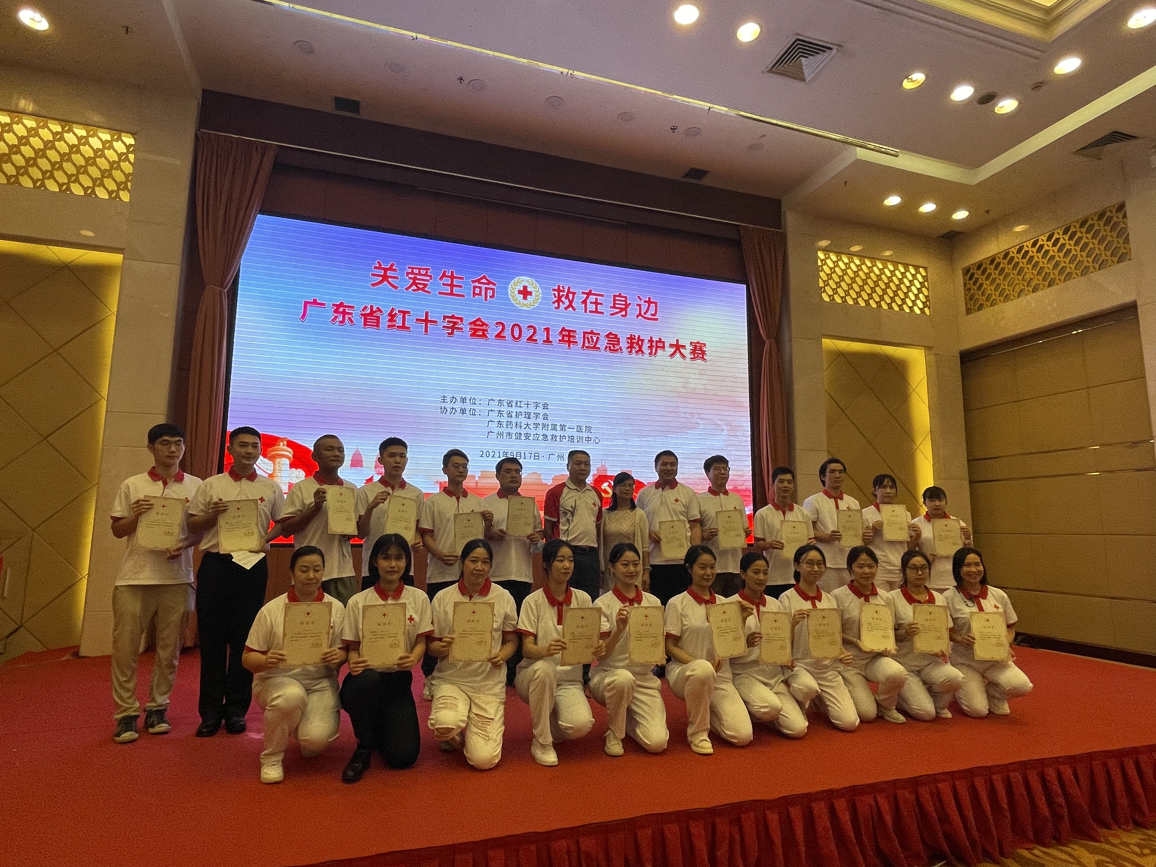 9月16日至17日,广东省红十字会2021年应急救护大赛在广州举办,来自全省各地市、各行业红十字会11支代表队超70人参加比赛。大赛围绕“关爱生命,救在身边”主题,分场景模拟、演讲比赛和常识问答三个环节进行。为保障大赛顺利进行,比赛两天共计超50人次服务于大赛,包括模拟伤员志愿者、礼仪志愿者、后勤志愿者等。