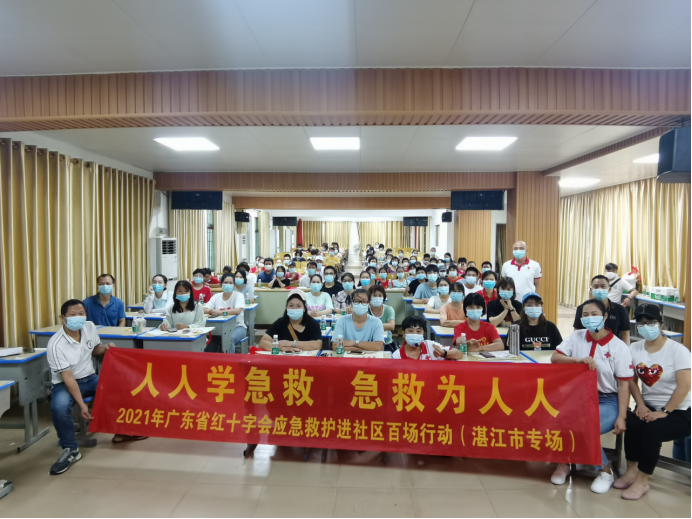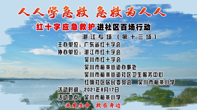 8月17日上午,由广东省红十字会联合湛江市红十字会、吴川市红十字会、吴川市梅菉街道办事处、吴川市梅菉街道社区卫生服务中心、红旗社区居民委员会、吴川市梅菉小学在吴川市梅菉小学开展了红十字应急救护进社区百场行动湛江市第十三场,梅菉街道办事处公共服务办副主任林春放、梅菉街道红旗社区书记邓木水、梅菉街道社区卫生服务中心副院长江扬平出席活动并做重要讲话,梅菉街道办事处公共服务办副主任林春放、梅菉街道红旗社区书记邓木水、梅菉街道社区卫生服务中心副院长江扬平率领96名社区工作人员、志愿者、居民、老师全程参加课程。
