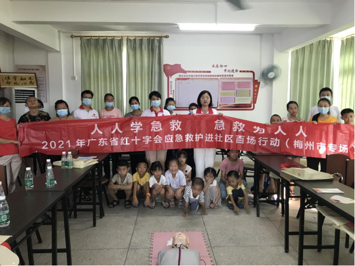 本次活动是广东省红十字会联合梅州市红十字会共同举办了应急救护课程,由红十字应急救护卓莉俊老师主讲,现场吸引了48名街道工作人员、居民、志愿者参加。