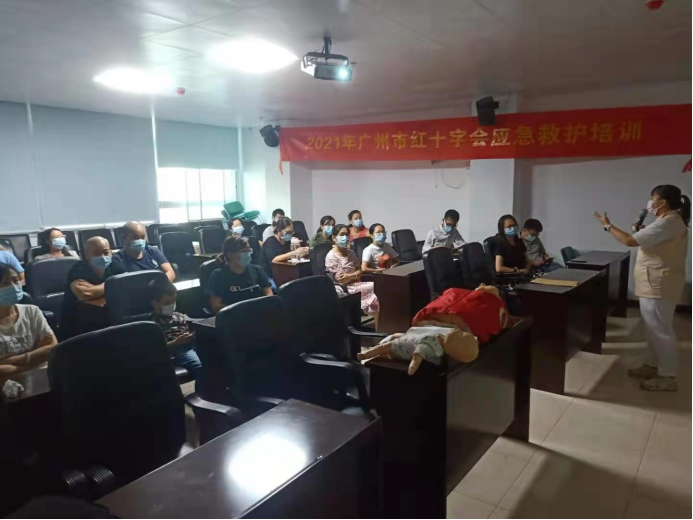 2021年8月27日下午,广州市红十字应急救护公益培训讲座来到广州市残疾人就业培训服务中心,培训现场约30人参与,包括就业指导中心工作人员、残疾人,他们中也有带着孩子来一起学习。