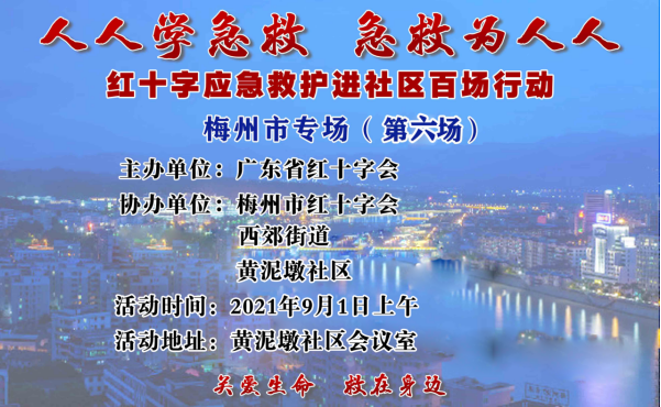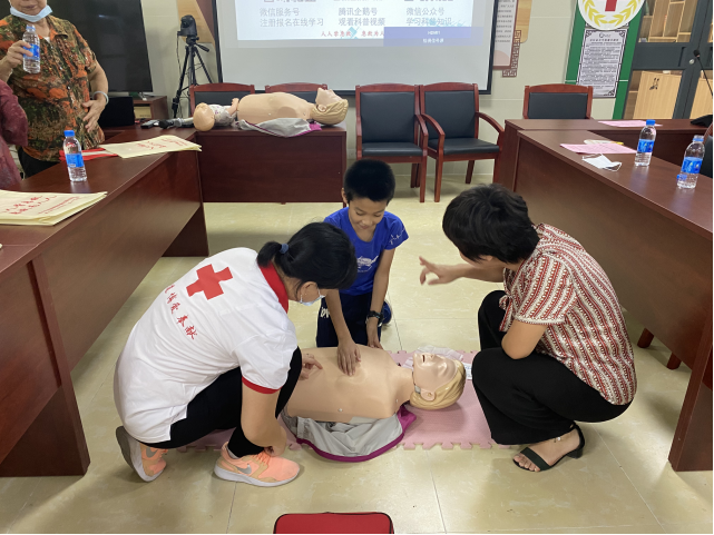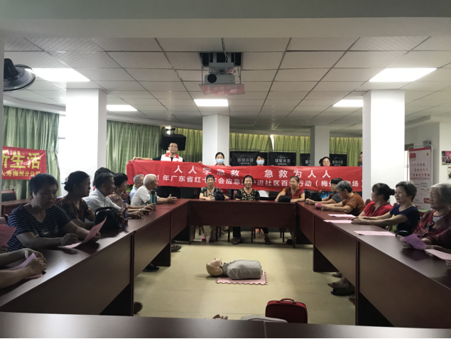 为满足社会公众学习应急救护知识的需求,更好地践行“我为群众办实事”, 9月1日上午,广东省红十字会联合梅州市红十字会、西郊街道和黄泥墩社区共同举办了红十字应急救护进社区百场行动梅州专场第六场培训,红十字会应急救护师资卓莉俊主讲本次课程。