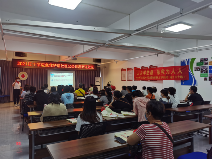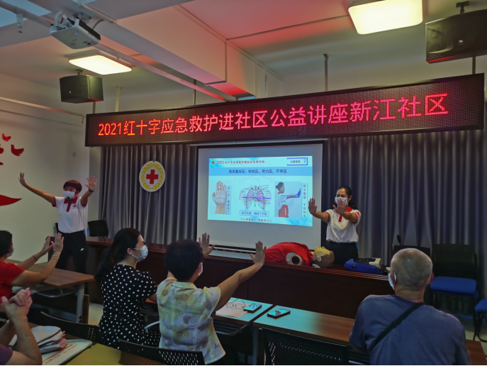 9月2日下午,广东省红十字会联合湛江市红十字会、赤坎区卫生健康局 、中华街道办和新江社区开展了红十字应急救护进社区百场行动湛江市专场第十四场培训,中华街道新江社区杨绿书记出席活动并作重要讲话。杨绿书记率领42名社区工作人员、志愿者、居民全程参加课程。
