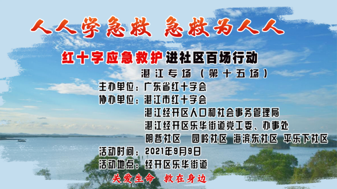 9月9日上午,广东省红十字会联合湛江市红十字会、湛江经开区人口和社会事务管理局、湛江经开区乐华街道党工委、办事处、明哲社区 、园岭社区 、海滨东社区 、平乐下社区开展了红十字应急救护进社区百场行动湛江市第十五场,经开区乐华街道林同昆副主任出席活动并强调纪律与要求。林同昆副主任表示近年来,社区居民发生心血管疾病、癌症等疾病发病率增多,开展应急救护培训、普及救护知识可减少伤残、降低损失、提高挽救生命的几率。本次活动在省市红十字会的指导下,多个社区联动开展,希望居民能率先垂范,增强自救互救能力,给有需要帮助的人员及时给与救护,形成“人人学急救,人人会急救”的局面。同时率领46名社区工作人员、志愿者、居民全程参加课程。至此,红十字应急救护进社区百场行动湛江专场项目已圆满完成完美收官。