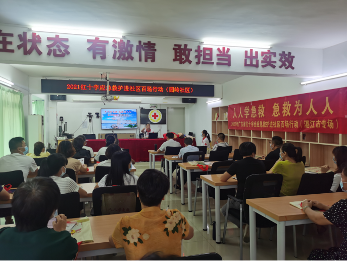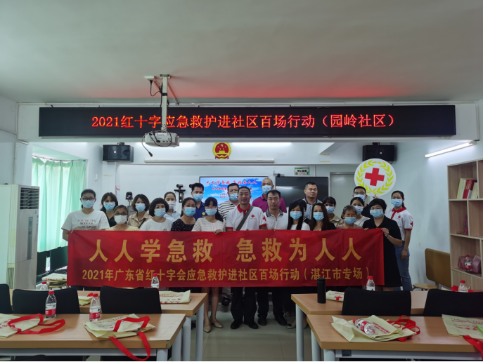 由广东省红十字会主办的应急救护进社区百场行动,湛江市红十字会高度重视,从7月23日开始,持续48天,深入湛江市5个区4个县(市)共15个社区,出动60名红十字会救护师资和工作人员,培训了居民、村民、社区工作人员、志愿者共769人。项目非常受社区的欢迎,纷纷表示期待每年都能够开展,部分居民还强烈要求再次参加学习。同时,项目也得到了社会的广泛关注和好评,湛江电视台、湛江日报和微信公众号先后多次对项目进行了跟踪报道,营造了“人人学急救、急救为人人”的良好氛围。