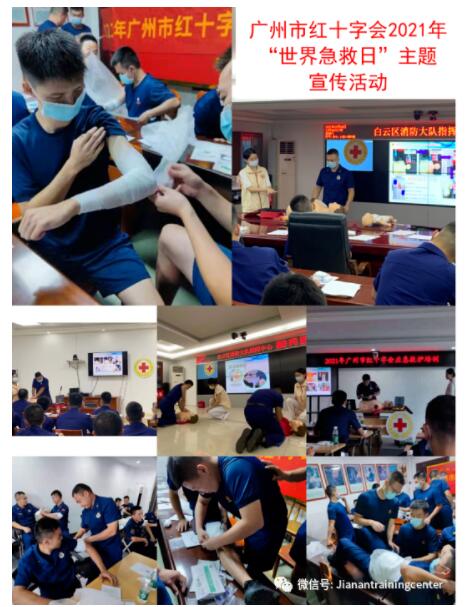 (一)广州市红十字会于8月31日至9月7日在白云区消防救援大队开展7期红十字救护员培训课程。红十字师资们带着教材、教具分别去到白云区各个消防站点开展培训课程。“蓝朋友”刻苦学习,认真专研,勤于实践,通过线上理论+线下技能实操,学习、训练、考核,最终近三百人取得红十字救护员证书,进一步提升消防队伍应急救护能力,提升队伍整体素质。