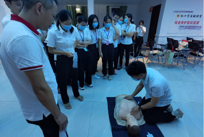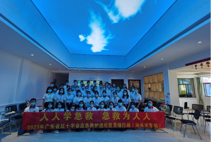 广东省及各级红十字会、充分认识做好校园安全工作的现实紧迫性和极端重要性。潮南卫生局将学校安全工作作为一项重要的政治任务来抓,因此一开学,联系了红十字会为辖区学校和居民开展一场别开生面的应急救护培训。在 9月11日上午,广东省红十字会联合汕头市红十字会、潮南区红十字会在峡山街道亚太实验学校举办了红十字应急救护进社区百场行动汕头专场第四场培训,共有57名社区居民、老师、家长参加。