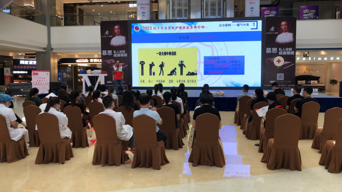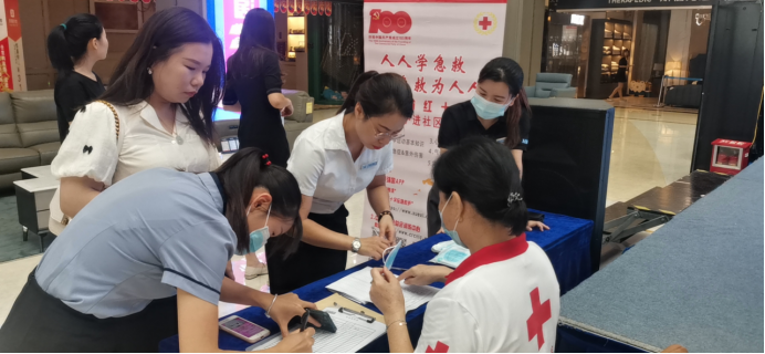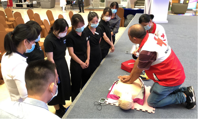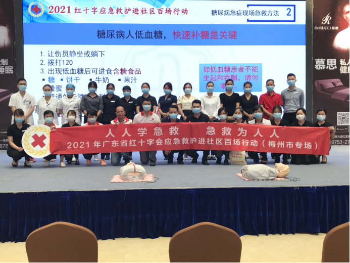 9月13日上午,由广东省红十字会主办的红十字应急救护进社区百场行动梅州专场第十一场活动在锦绣国际.居家建材博览中心圆满成功。在梅州市红十字会和扶大社区认真筹备下,选派了红十字会应急救护资深老师陈瑞卿为社区工作人员、居民、志愿者、企业职工共60人进行应急救护培训。