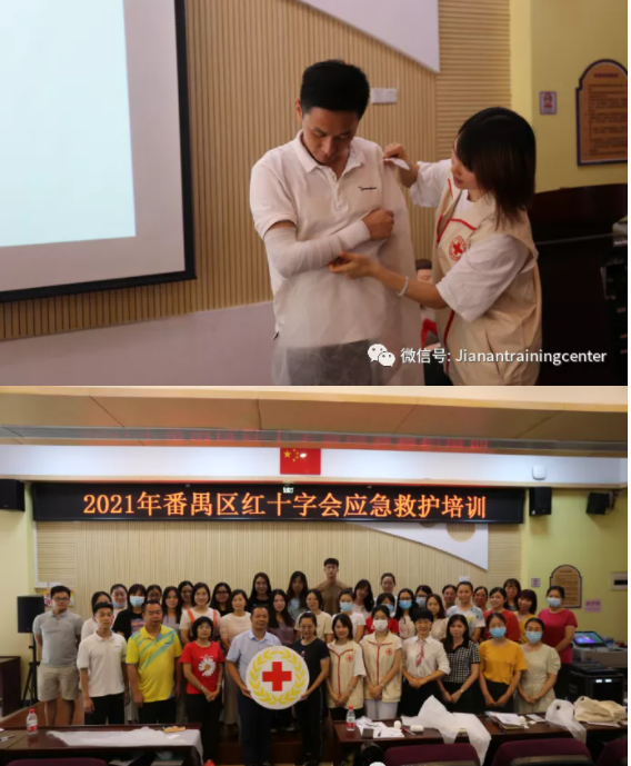 番禺区红十字会选派资深救护师资到市番禺区剑桥郡小学为40名教职工开展救护培训。