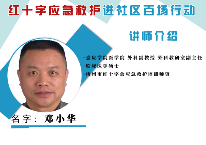 早上9点开始,红十字会应急救护师资邓小华为54名进行红十字救护培训。这是由省红十字会主办,梅州市红十字会、府前社区和怡景豪园协办的红十字应急救护进社区百场行动梅州专场第十二场。