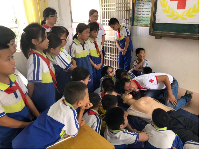 据悉,在校园生活中,学生往往是突发事件的“第一目击者”,为使他们由“第一目击者”向“第一施救者”转变,广东省及各级红十字会充分认识做好校园安全工作的现实紧迫性和极端重要性,因此一开学,红十字主动联系东镇街道,为辖区学校开展一场别开生面的应急救护培训。