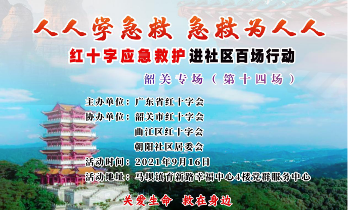 为了开展第22个“世界急救日”红十字应急救护进社区百场活动,大力弘扬人道主义精神,帮助居民群众积累应急救护的相关知识和技能,提高自救互救能力。9月16日上午,广东省红十字会联合韶关市红十字会、曲江区红十字会、马坝镇居民委员会、曲江区幸福社会工作服务中心在幸福社工中心开展了“人人学急救,急救为人人”应急救护培训活动,现场吸引了众多社区居民、志愿者参与。