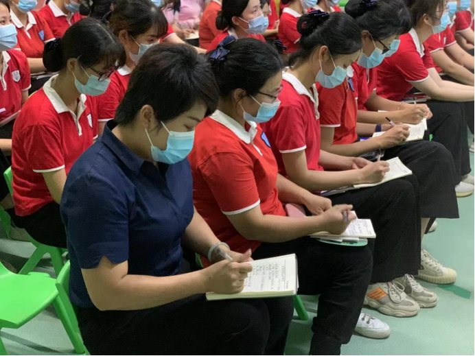 本次培训聚焦体验式教学,红十字资深师资陈徐琛老师不拘泥于单向讲授的形式,而是变单向讲授为双向互动,抛出一个个生活常见的急救问题,让大家在生动有趣的现场问答互动和详实鲜活的案例讲授中学习心肺复苏、海姆立克法等应急救护知识。培训学践结合,红十字师资一对一、手把手指导学员在成人模拟人和AED上练习操作,使大家对心肺复苏的全过程有了更加深刻的理解,学员们听得专心致志,不时低头刷刷地记笔记。