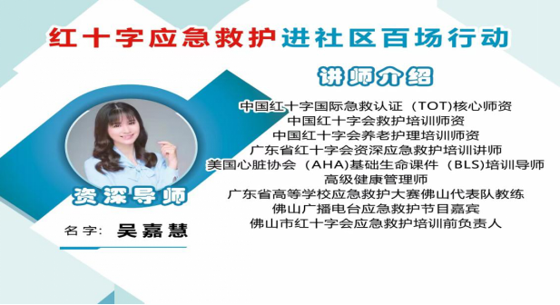 课上清远市红十字会应急救护培训师吴嘉慧为居民进行了心肺复苏、AED、海姆立克急救法演示以及常见突发疾病如脑卒中、心肌梗塞、低血糖、癫痫等课程讲授,吸引了不少现场群众的目光。
