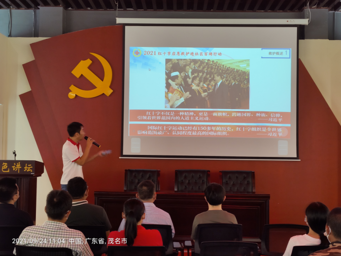 为进一步提高社区居民自救互救能力,推动救护培训项目进社区,9月24日下午,广东省红十字会联合茂名市红十字会 、化州市红十字会在白鸠垌社区开展“红十字应急救护进社区百场行动”茂名专场第十一场培训。